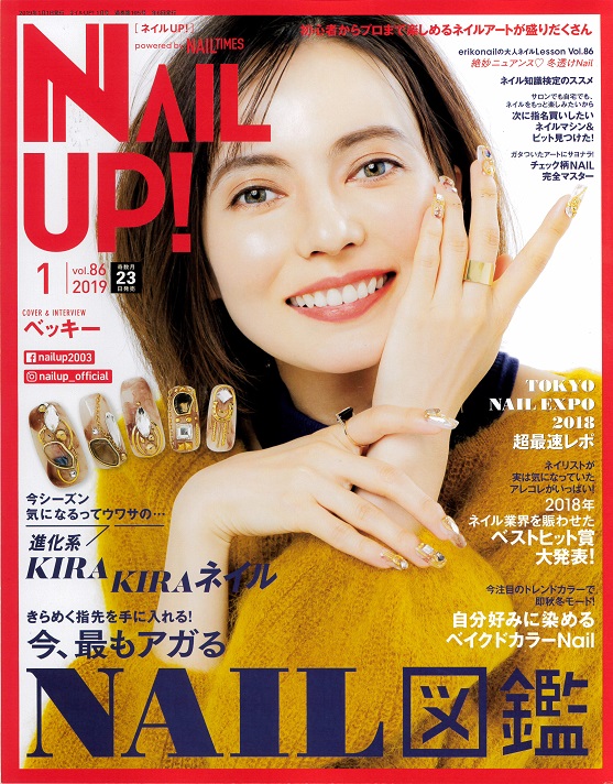 103p「2019 JANUARY Catch UP!」にて カルジェルカラージェル ショコラアンバー(CGBB19S) / ガーネットレッド(CGRE09S)/ オニキスグレー(CGNG05S)を紹介 132p「2018 JULY PRESENT」にて 上記カラージェル3色を掲載 134p「田賀美鈴 百花繚乱ネイル vol.17」にて カルジェル クリア、ディープグリーン(CGGR02S)、ノンワイプトップジェル、マットトップジェル を紹介