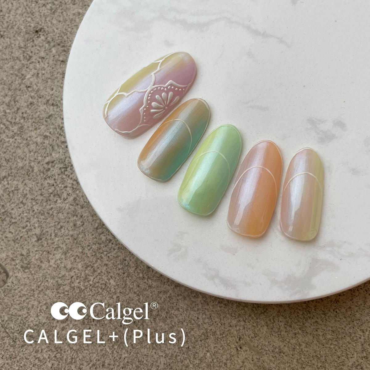 必ずカルジェルクリアジェルまたはカルジェルベースコントロールカラーの上に塗布してください。