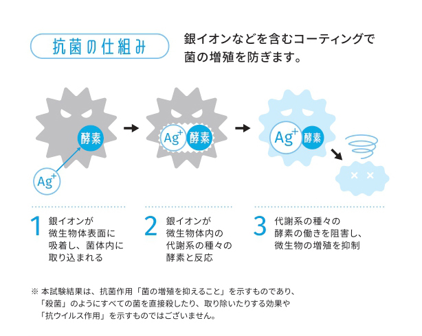 A,大腸菌、黄色ブドウ球菌は様々な菌の代表である為、世の中の菌に対して抗菌性があるとされます。