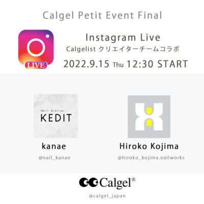 配信アカウント:@hiroko_kojima.nailworks / @nail_kanae / calgel_japan ※ぜひフォローしてお待ちください♪
