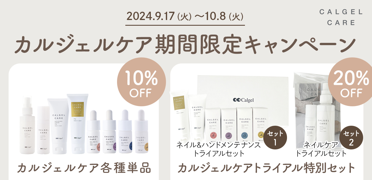 季節の変わり目、乾燥が気になるこれからの季節に向けて、カルジェルのハンド&ネイルケア商品が特別価格でお求めいただけます。